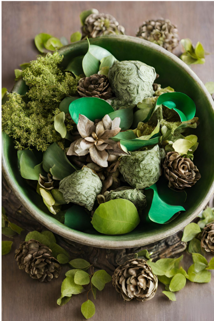 Symbolizing St. Patrick’s Day, we can decorate our living room with jazzy green accents to make it pop out or add fresh flowers in shades of green and white for a rustic and minimal appeal. Incorporate elements like miniature leprechaun hats or pots of gold for a whimsical touch, creating a stunning focal point for your table. Adding a green potpourri to your centerpiece is a wonderful idea as well. It can add to the festive theme. Arrange the potpourri in a decorative bowl or tray, and scatter it around the centerpiece for an extra dose of Irish charm.