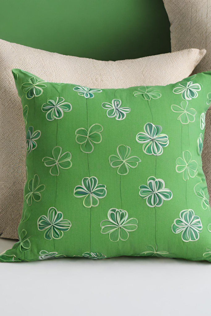 You can decorate the couch with green cushion covers and a matching throw to add a hint of color on St. Patrick’s Day. It’ll be subtle yet would very well reflect the festive atmosphere. These simple additions not only add a pop of festive color but also create a cozy and inviting atmosphere for you and your guests to enjoy.